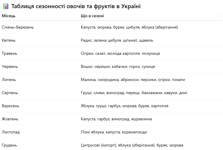 - Смак — сезонні продукти завжди солодші, соковитіші та ароматніші.